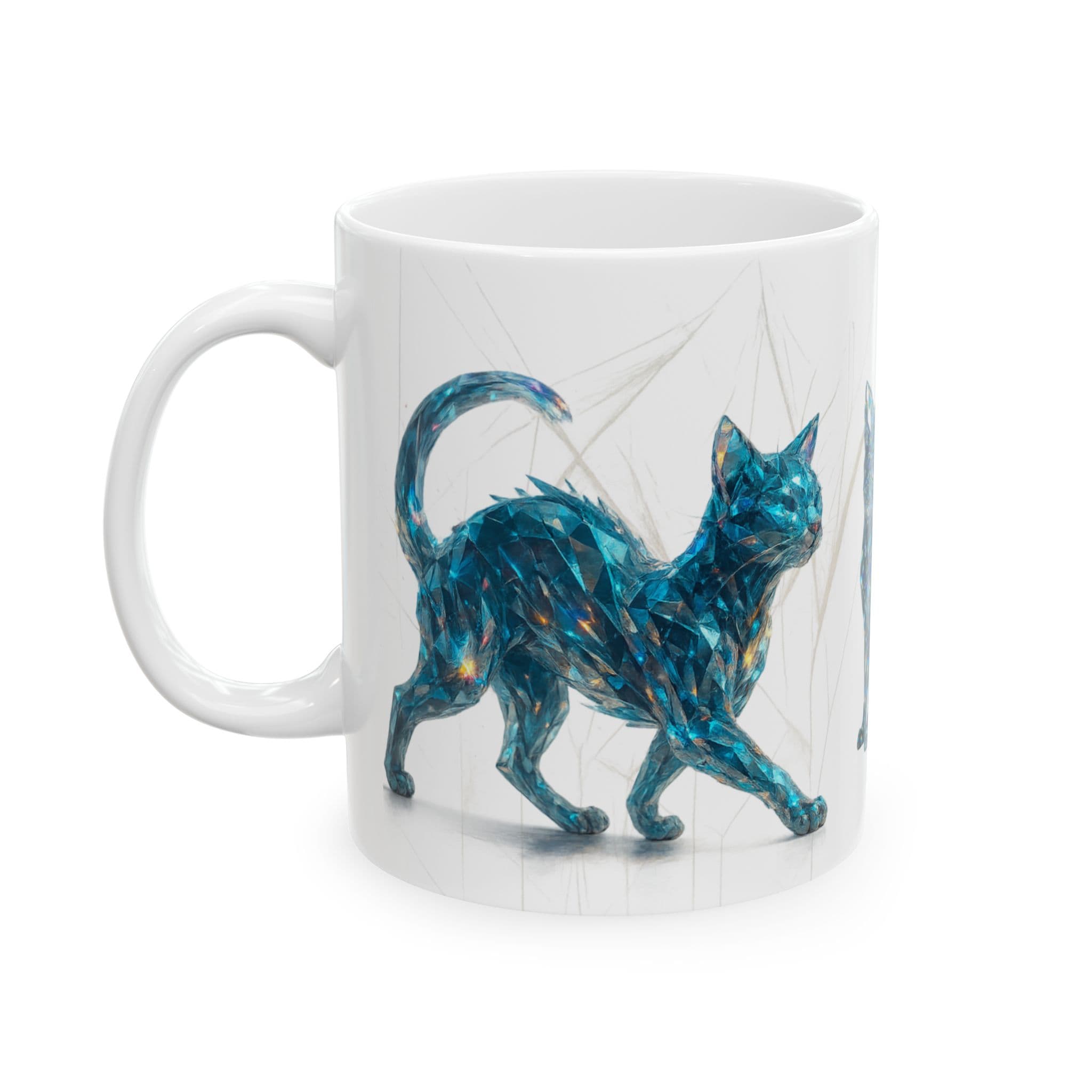 cat mug, crystal cat art, prism cat design, refraction cat mug, cat lover gift, unique cat mug, art coffee cup, glass cat art, 11oz mug
